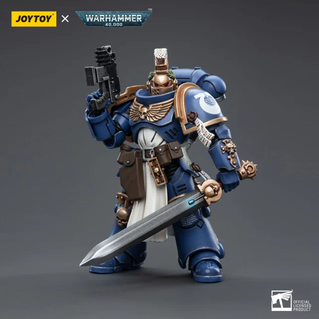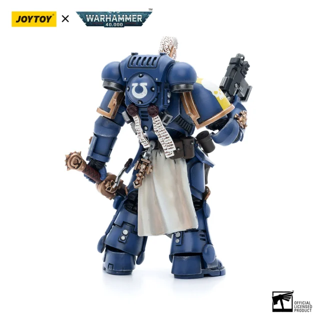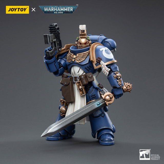 Standing at approximately 5.31 inches tall, this figure features is an exceptional and detailed action figure that is sure to delight collectors and fans of the Warhammer 40K universe. This particular figure depicts the Ultramarines Primaris Company Champion Brother Parnaeus, one of the elite warriors of the Ultramarines Space Marine Chapter